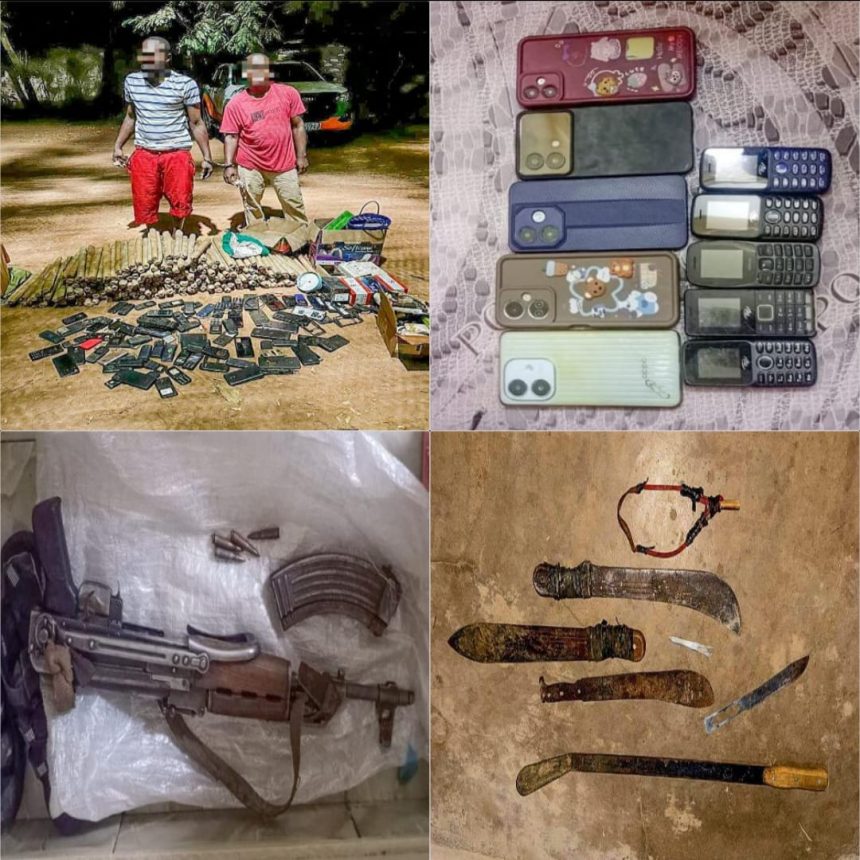 The officers recovered assorted crude weapons, a firearm, narcotic drugs, and police uniforms during the multi-agency operation, which is still ongoing.