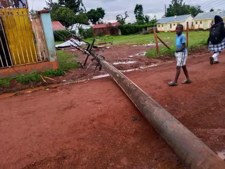 Elsewhere, strong winds destroyed electricity poles in Angorom Ward and blew off the roof of a semi-permanent house in Agolot sub-location.