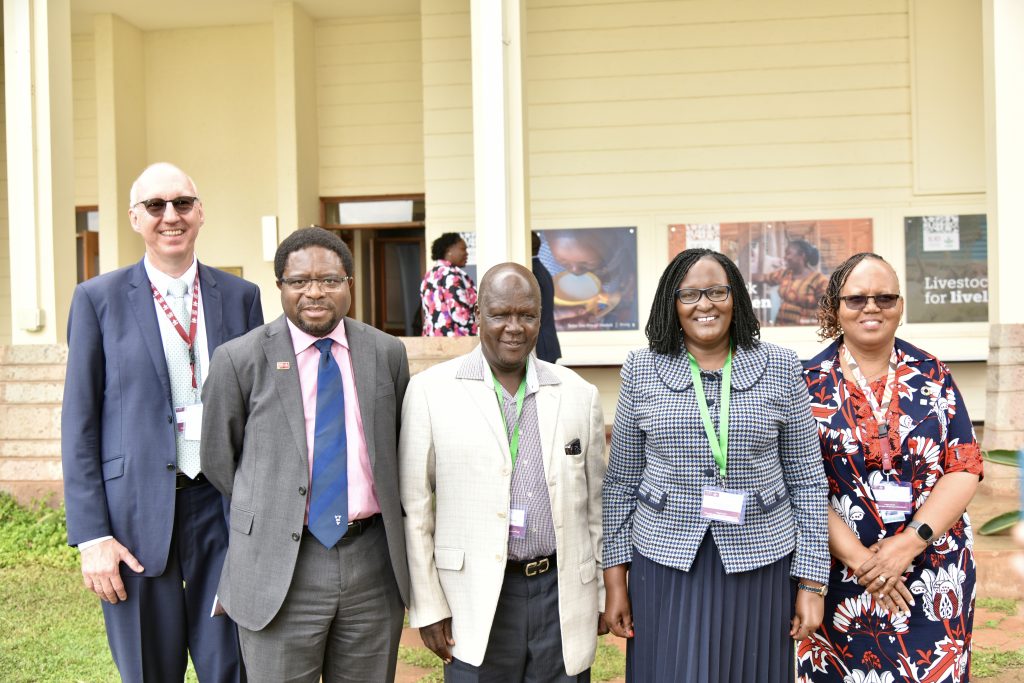 L-R: Dr. Fabian Kausche, Deputy Director General Research and Innovation at ILRI, Professor Appolinaire Djikeng, DG at ILRI, Dr. Joshua ChepChieng, Secretary Administrator, State Department of Livestock, Margaret Kibogy, MD Kenya Dairy Board and Dr. Siboniso Moyo, Deputy Director General Partnerships & Impact at ILRI during the official launch of the More Milk at ILRI campus in Nairobi, Kenya.