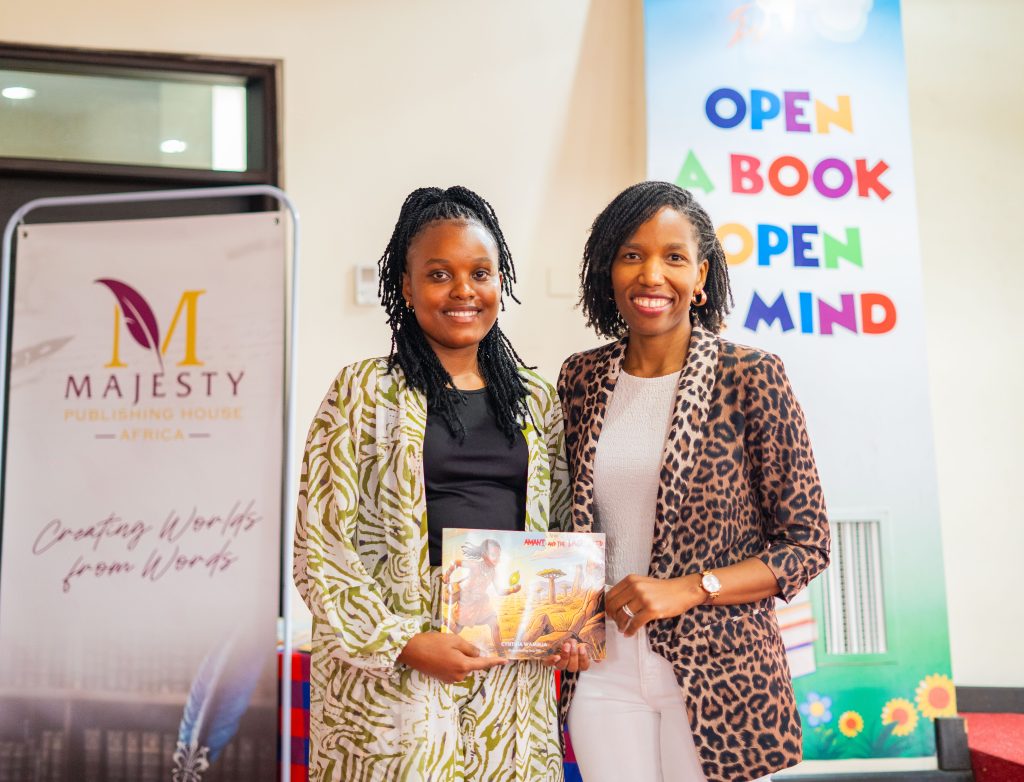 Cynthia Wambua, author of Amani and the Last Seed and Lorraine Onduru, CEO of Majesty Publishing House Africa hold a copy of the newly released children’s book