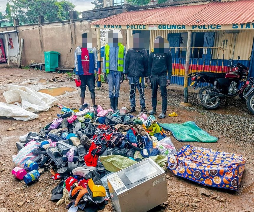 Police in Kisumu County have arrested four suspects in a targeted crackdown on theft and the handling of stolen goods, recovering motorcycles, household appliances and other items believed to be part of an illegal resale network.