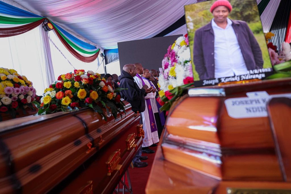 The requiem mass for the 16 people who perished in a road accident on the Nyeri-Nyahururu highway is underway at the ASK Kabiru-ini grounds in Nyeri.