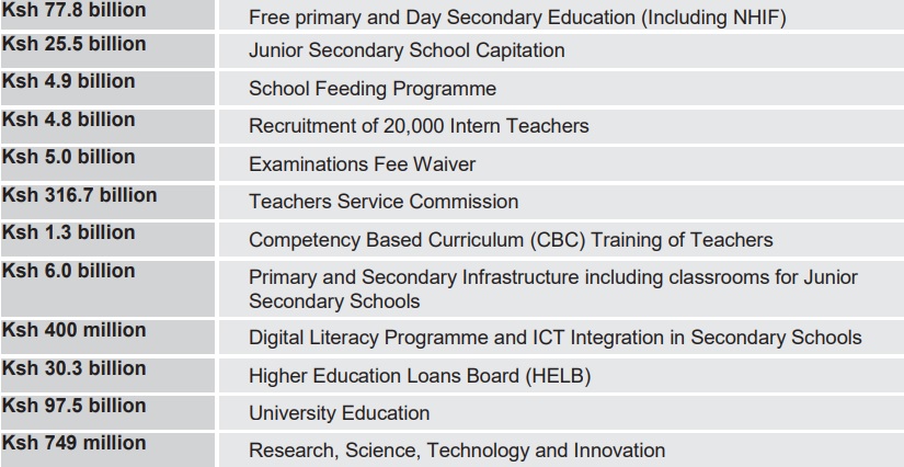 To improve educational outcomes in the country, Ksh 628.6 billion has been allocated in FY 2023/24.