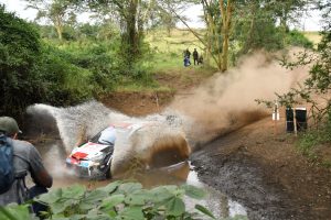 Elfyn Evans, who also drives a Toyota, was the focus of the morning’s major drama as he was stopped by water splash near the end of Soysambu 1.